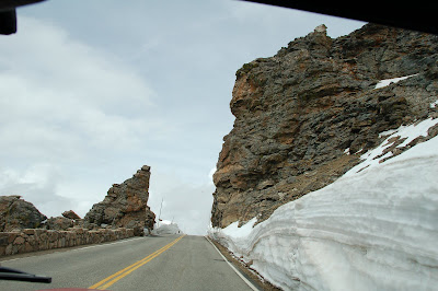 Here is where the road winds through the rocky face on the way to the summit. The weather was perfect on the way up but started to snow when we were at the summit, and for part of the way down.